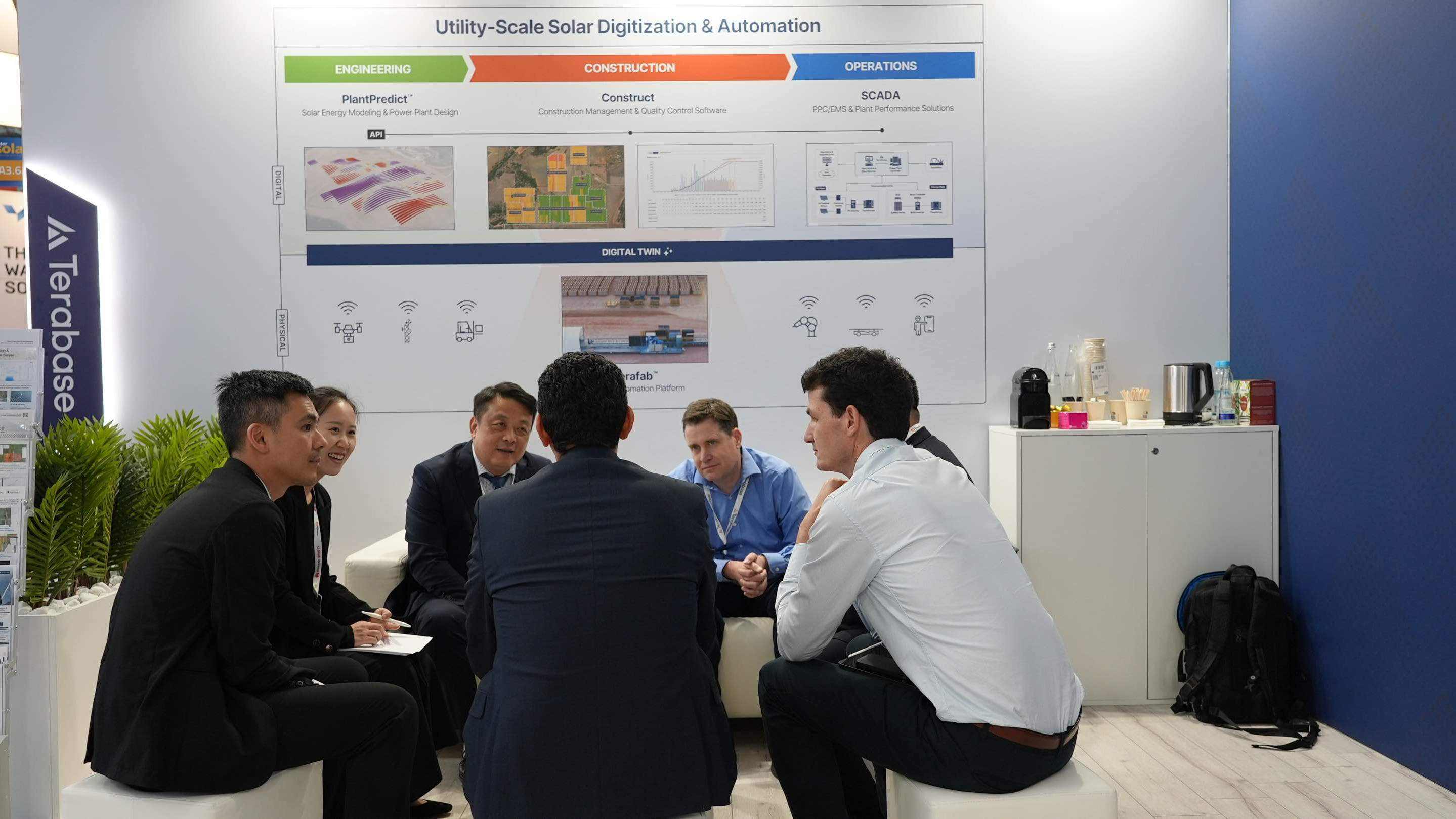 王遠輝在2025年國際太陽能技術博覽會(Intersolar Europe)與公司合作伙伴會談